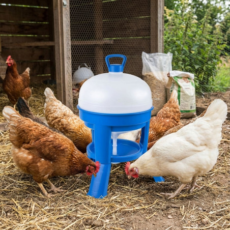 Bebedouro para galinhas com capacidade para 20 litros, feito de plástico durável e de alta qualidade, adequado para uso externo, mantendo um suprimento constante de água limpa e fresca para galinhas e outras aves. Recomendado para 10 a 12 galinhas. Dimensões: diâmetro 36 cm, altura 62 cm. Fabricado na Espanha.