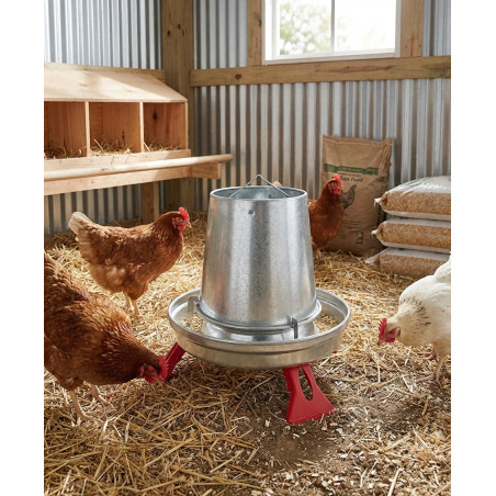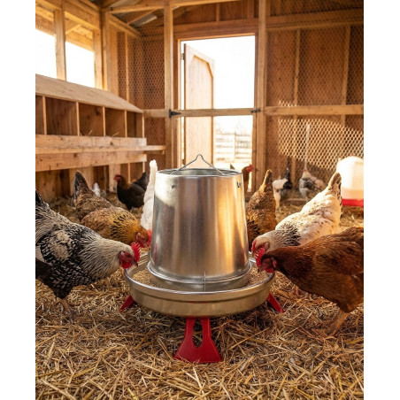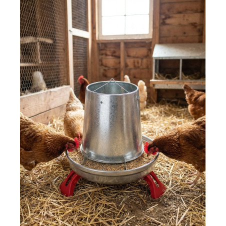 Tremonhas metálicas para frangos, feitas de chapa galvanizada. Sua durabilidade permite um uso amplo e duradouro, pois são resistentes à corrosão e aos impactos causados pelo manuseio. Seu acabamento dobrado de alta qualidade é afiado e evita qualquer ferimento tanto para o criador quanto para os animais. Seu design permite que o cone e a bandeja sejam totalmente expansíveis, facilitando o transporte e o armazenamento. Também podem ser pendurados ou colocados diretamente no chão graças aos seus pés.