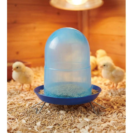 Comedouro para pintinhos de primeira idade. Capacidade de 1,5 litro. Feito de plástico translúcido de alta resistência, permite verificar o nível de ração. O sistema antiempoleiramento evita a contaminação da água. Fabricado em duas partes removíveis (bandeja e cone) para fácil limpeza e abastecimento prático.