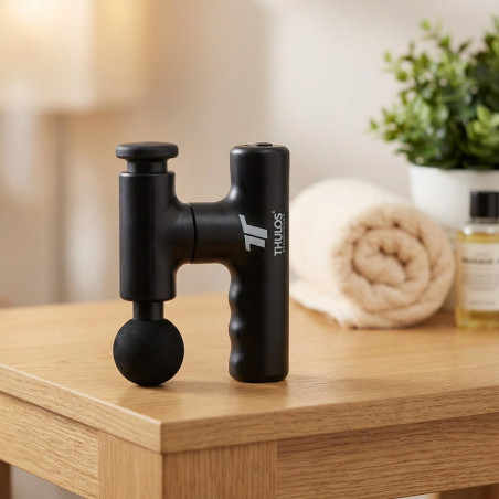 Alivie a tensão e as dores musculares com o massageador portátil THULOS TH-BY21. Vibração intensa, design ergonômico e carregamento USB para alívio profundo onde quer que você precise.