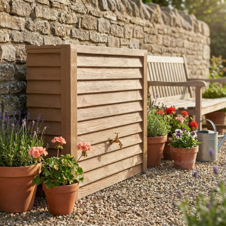 • Tanques fabricados em polietileno com acabamento semelhante à madeira rústica.