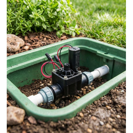 Compatível com qualquer marca de temporizador elétrico. Permite ligar e desligar o sistema de irrigação manual ou automaticamente.