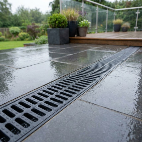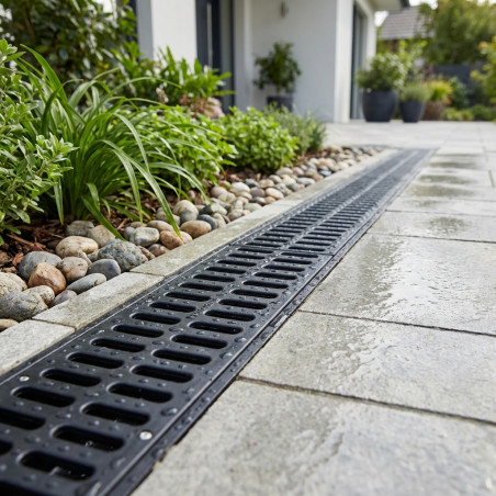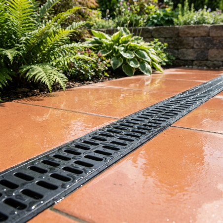 Design inovador para drenagem eficiente: Oferece um sistema de drenagem avançado com grelha de polipropileno , ideal para o gerenciamento de águas pluviais em jardins e terraços. Calhas robustas para longa durabilidade: As calhas de drenagem são projetadas para serem duráveis e resistentes às intempéries, garantindo um desempenho confiável em todos os tipos de condições climáticas. Ideais para pisos externos e terraços: Graças ao seu design versátil, estas calhas são ideais para instalação em pisos externos e terraços, proporcionando uma solução estética e funcional para a drenagem de águas pluviais. Grelha oculta para melhor estética: A grelha oculta não só facilita a drenagem eficiente, como também melhora a estética do ambiente, integrando-se perfeitamente à paisagem e à arquitetura do entorno.