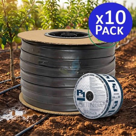 Fita de irrigação por gotejamento de 16 mm, 35.000 metros, calibre 6 mil. Gotejadores de 1,5 ou 1,1 l/h por 30 cm.