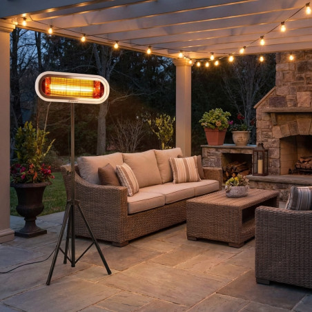 O aquecedor de pátio infravermelho Orbegozo, com potência de 2000 W, é ideal para uso interno e externo. Possui classificação IP-65, sendo resistente à água, e emite calor infravermelho direcionado para pessoas e objetos, garantindo máxima eficiência. Distribui o calor de forma uniforme e contínua, proporcionando aquecimento instantâneo e intenso. Com raio de ação de 3 metros, ângulo de inclinação ajustável e funcionamento silencioso. Inclui suporte de parede em aço inoxidável e cabo de 200 cm. Conexão 220 V ~ 50 Hz.