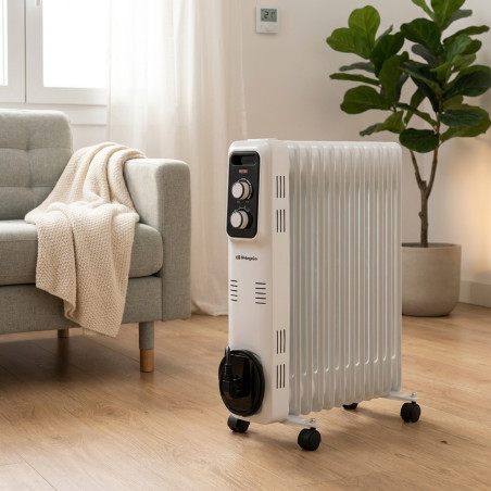 Radiador a óleo Orbegozo com potência máxima de 2500 W e 11 elementos de aquecimento com alta inércia térmica. Possui três níveis de aquecimento, termostato ajustável, sistema de proteção contra superaquecimento, sistema de proteção antitombamento, fácil manuseio, alça de transporte, sistema de armazenamento de cabos, luz indicadora de funcionamento e rodízios giratórios multidirecionais. Suas dimensões são 25 x 63 x 44 cm com rodízios e 12,5 x 58,5 x 44 cm sem rodízios. Opera a 230 V ~ 50 Hz.