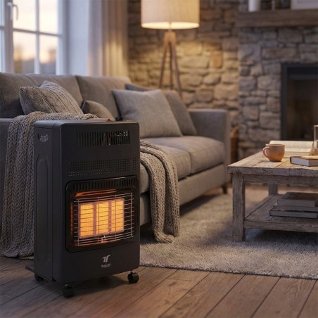 Aqueça sua casa de forma rápida e segura com o aquecedor a gás butano TH-GH421. Desfrute de 3 níveis de aquecimento ajustáveis, um design dobrável e a tranquilidade da proteção anti-tombamento.