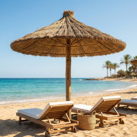 Guarda-sol de esparto, ideal para proporcionar sombra em piscinas, praias, jardins, etc.