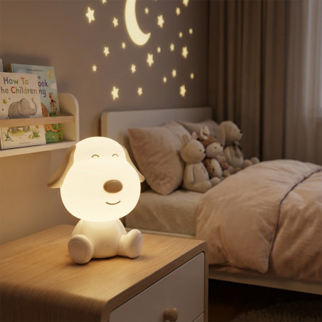 Com seu charmoso design de cachorro, este abajur se torna instantaneamente a peça central de qualquer quarto infantil. Feito com materiais seguros e duráveis, seu toque suave e aparência amigável o tornam perfeito para abraçar. A tecnologia LED de baixo consumo garante uma iluminação suave e aconchegante, ideal para criar uma atmosfera relaxante que promove um sono tranquilo.