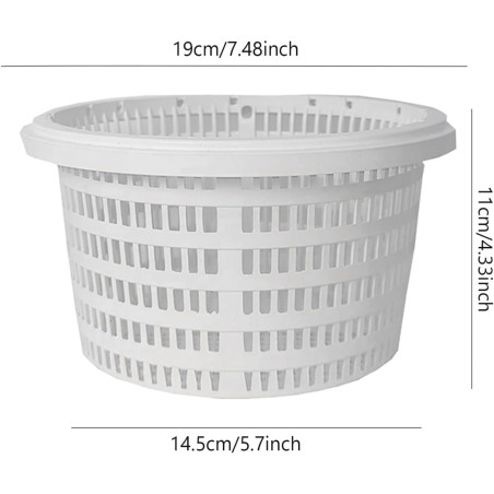 Fabricado em material plástico de alta qualidade e resistente ao cloro, o cesto mantém a sua forma e funcionalidade mesmo após exposição prolongada ao sol ou à água tratada. A sua estrutura aberta permite um fluxo constante, melhorando o desempenho do sistema de filtração.