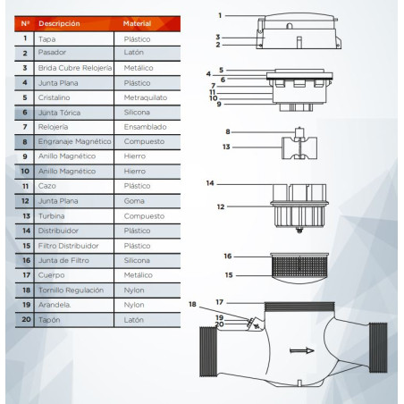 Fornece leitura direta em um contador de rolo de 5 dígitos, indicando m³.