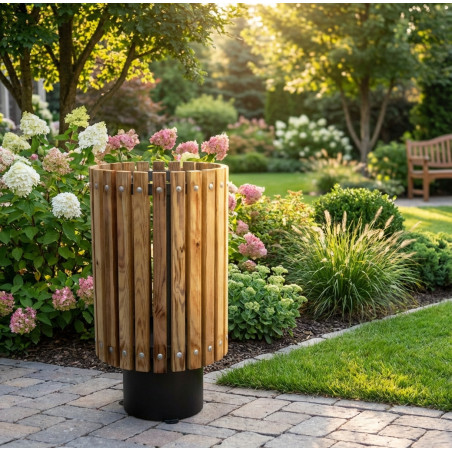 A lixeira Moncayo é feita de madeira de alta qualidade para garantir durabilidade e resistência.