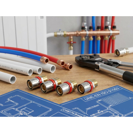 Fabricado de acordo com a norma UNE-EN ISO-21003 : Este produto está em conformidade com a norma UNE-EN ISO-21003, que garante sua alta qualidade, segurança e confiabilidade em aplicações de encanamento e aquecimento.