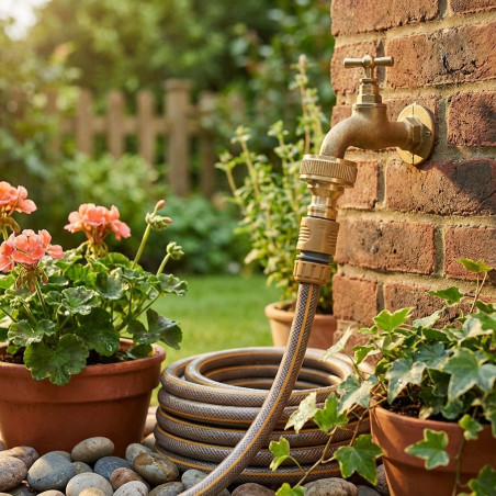 O adaptador é feito de latão, um material durável e resistente.