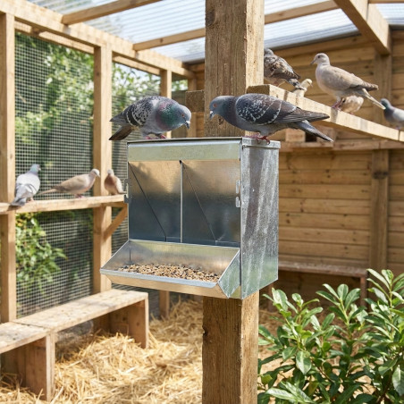 Este alimentador é ideal para pombos e pássaros de tamanho similar.