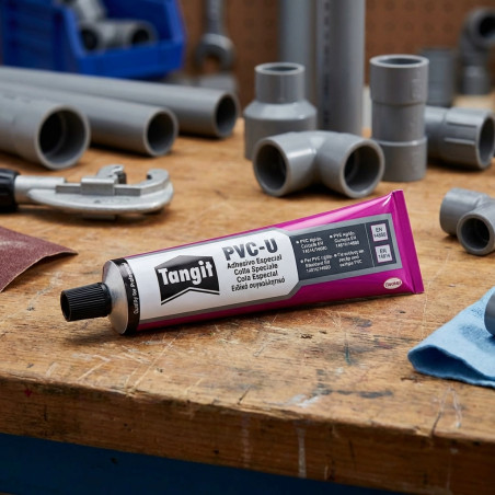 Adesivo Tangit para PVC Rígido 125g. Tubo de 125 gramas. Adesivo especial para tubos e conexões de PVC rígido. Ideal para unir tubos profissionalmente em sistemas de alta pressão para água potável, irrigação agrícola, gás, instalações industriais e químicas, sistemas de esgoto e drenagem, sistemas de ventilação e águas residuais, piscinas, spas e banheiras de hidromassagem. Excelente resistência de colagem. Viscosidade extra espessa sem gotejamento. Preenche folgas entre o tubo e a conexão de até 0.6mm. Fácil de aplicar. Secagem lenta para maior tempo de trabalho.