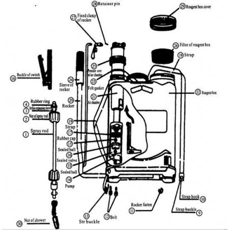 Pulverizador costal de 16 litros com lança e cabo . Inclui nivelador de lança e cabo. Bico extra longo. Câmara de pressão de alta resistência. Opção de uso ambidestro. Fabricado na Espanha.