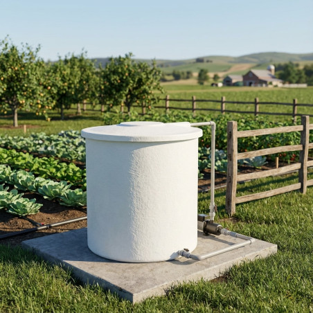 Tanque de água em poliéster reforçado com fibra de vidro com capacidade para 310 litros. Dimensões: diâmetro 78 cm, altura 90 cm. Fabricado na Espanha com materiais de alta qualidade, adequado para água potável e produtos alimentícios . Resistente a temperaturas de -30 °C a 60 °C, é anticorrosivo e não altera o odor ou o sabor. Ideal para armazenamento de água em uso doméstico, agrícola ou industrial. Instalação em superfície plana . Inclui tampa . Recomenda-se a limpeza antes do primeiro uso.
