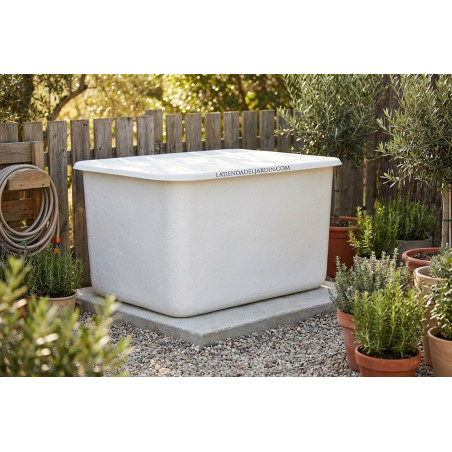 Tanque retangular de poliéster de 200 L com tampa, 76 x 70 x 52 cm. Para água potável e produtos alimentícios. Fabricado na Espanha com materiais de alta qualidade. Tanques retangulares feitos de poliéster reforçado com fibra de vidro. Comprimento 76 cm, Largura 70 cm, Altura 52 cm. Capacidade exata de 210 litros. Faixa de temperatura entre -30 °C e 60 °C. Inodoro e insípido. Pode conter produtos alimentícios. Anticorrosivo. Recomendamos a limpeza do tanque antes do uso. Para instalação em uma superfície totalmente plana. Inclui tampa.
