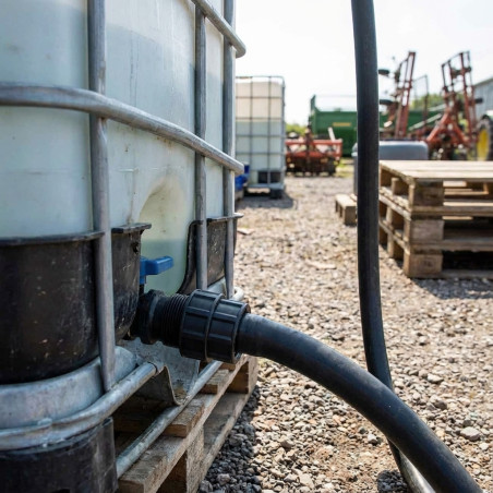 Adaptador universal projetado para tanques tipo gaiola de 1.000 litros. Tamanhos disponíveis: 1. Fabricado em polietileno na Espanha. Fornecido com junta para garantir a estanqueidade.