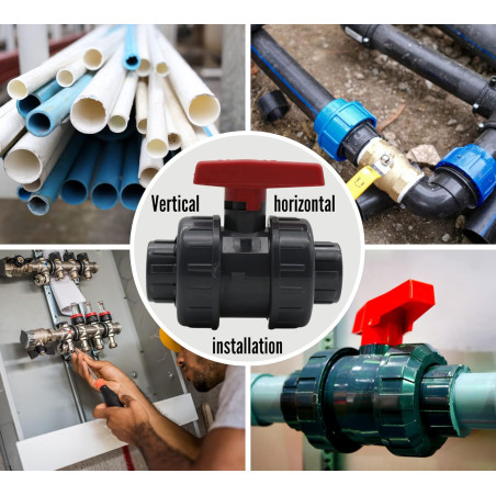Esta válvula é adequada para tubos de polietileno e PVC de 63 mm.