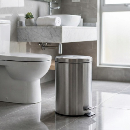 Esta lixeira de aço inoxidável é ideal para banheiros em hotéis, restaurantes e todos os tipos de estabelecimentos. Prática, compacta e funcional, possui acabamento fosco em cinza, branco ou preto. A tampa abre com um pedal.