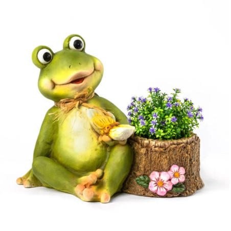 Vaso Sapo e Tronco: Adicione um toque divertido e natural ao seu espaço com esta peça decorativa original de 40x34x23 cm . Ideal para plantas pequenas, durável e versátil para uso interno e externo.