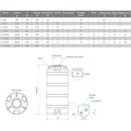 Der Tank hat die Abmessungen 230 cm im Durchmesser und 265 cm in der Höhe. Obere Einlauföffnung 60 cm.